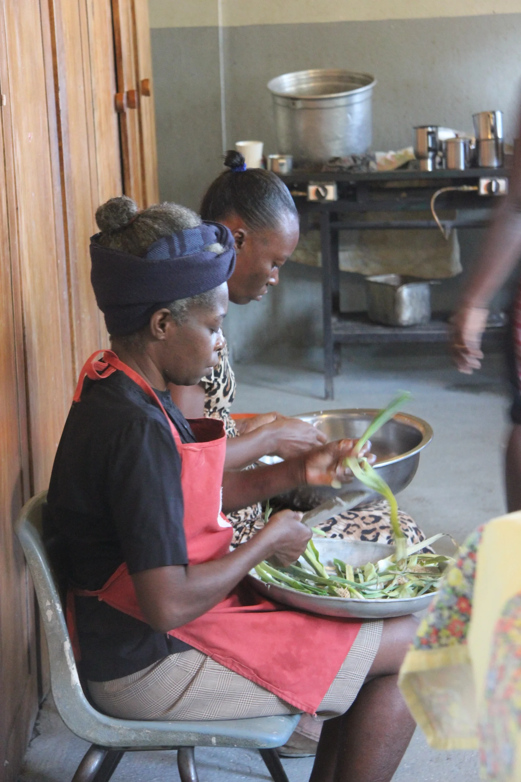 Some of the women you see helping to prepare food in these photos have children or grandchildren in our school. Although Three Angels’ tuition is already very low, even by Haitian economic standards, there are some families who still struggle to contribute. As part of a financial aid program that’s new this year, these families serve as helpers in return for a low- or no-cost high-quality education for their child. It’s a great way to help that allows those we serve to maintain their dignity. And because of our amazing Student Sponsors, no family who qualifies for aid is declined, and every one of our students receives the same excellent education, nutritious food, and professional medical care. What’s more, the ladies that come to help receive the same hot, nutritious meal as their kids in a safe, loving environment where they encounter the love of Jesus among their co-workers.