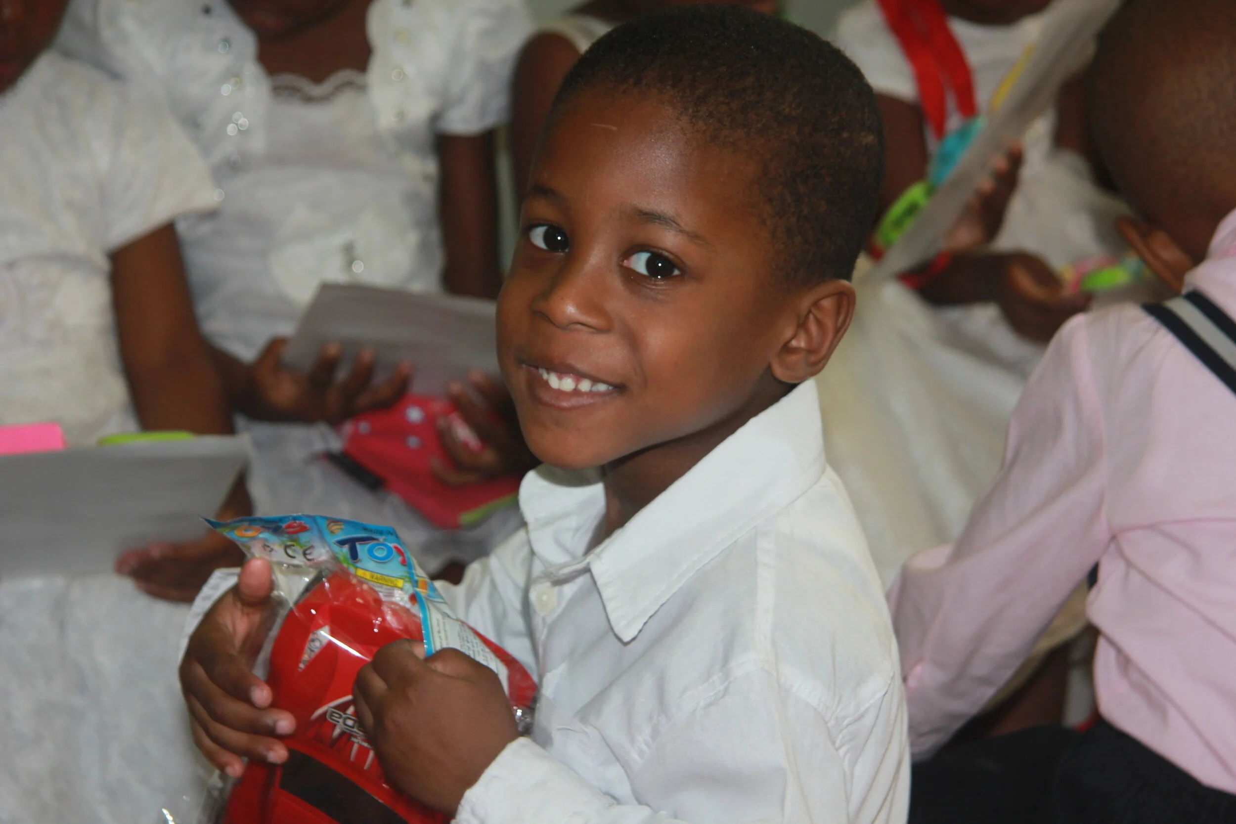 Please enjoy the slideshow below with these images from the day: We begin with the Angel House students leaving for school. Then move onto everyone gathering at Kenbe Fèm for some fun and entertainment and class performances. Next, we return to the classrooms for every child to receive a small Christmas gift. And then finally our students’ families line up to collect their complete Christmas Dinners provided by YOU, our faithful partners, before leaving for home.